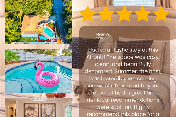 “The Art House was great! Cleanliness, location, and ambiance. Walking distance to the beach and close to so many stores! My family and I really enjoyed our stay here and the heated pool was a plus for the chilly days we had.” - Andreea